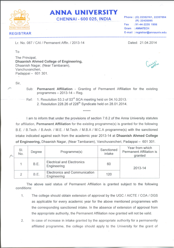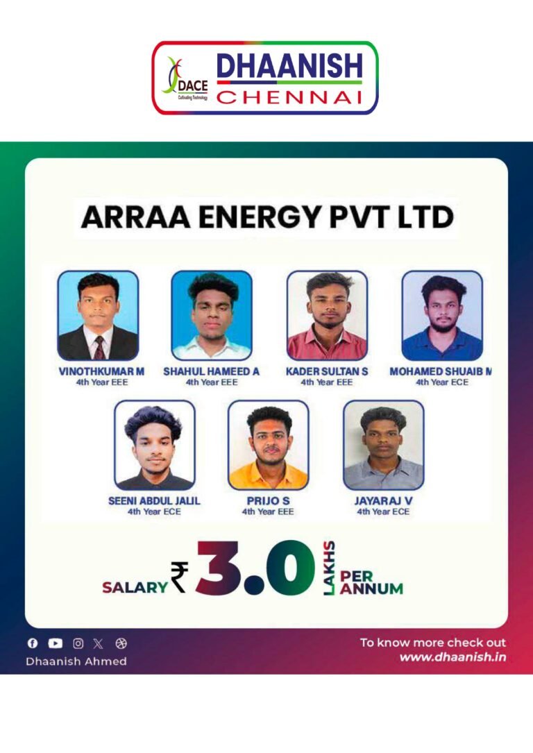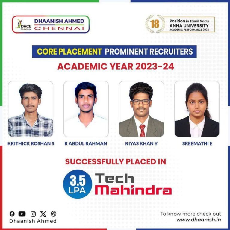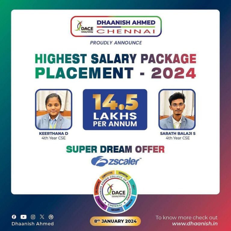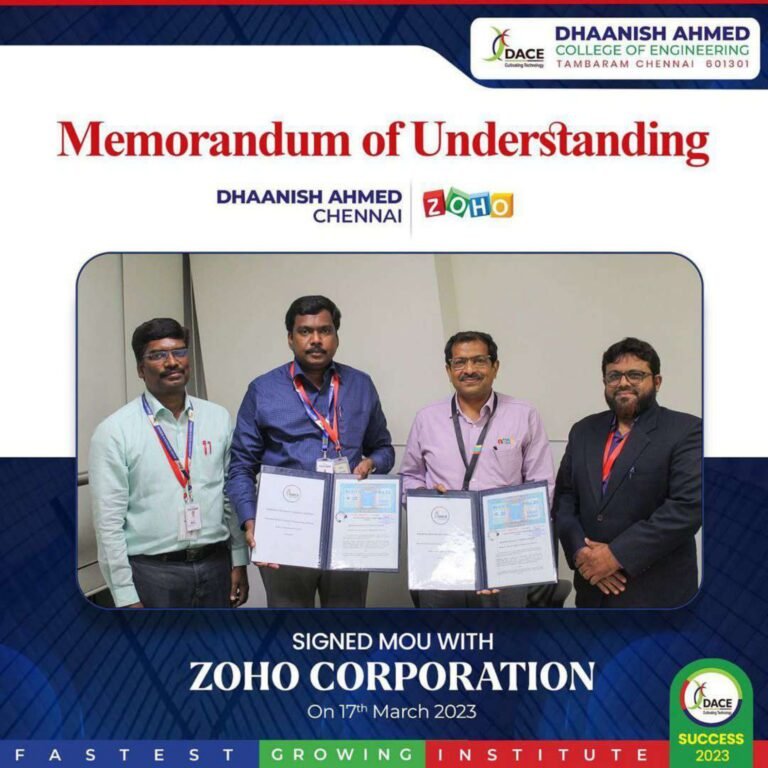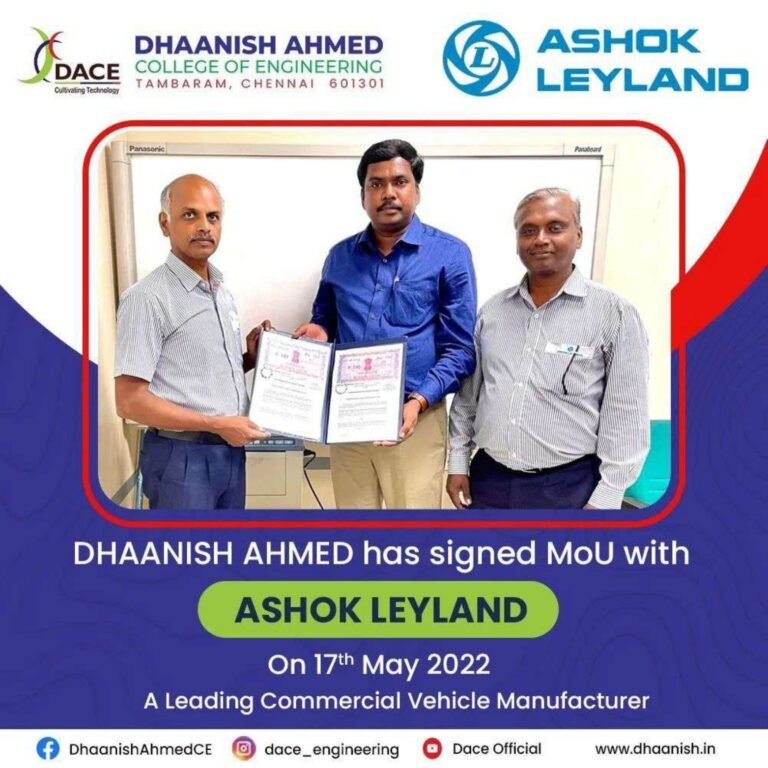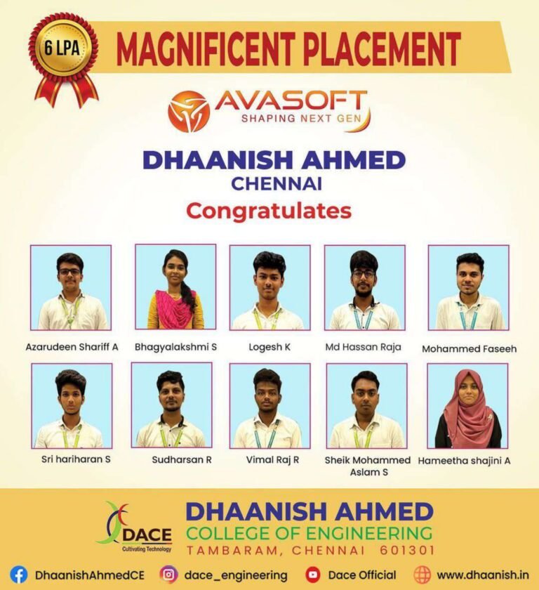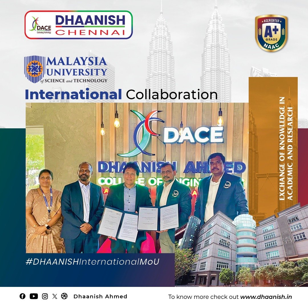 Dhaanish Ahmed College of Engineering was established in the year 1980 under the aegis of the Ayyanavaram Educational Trust (AET), by the founder and esteemed Chairman Alhaj.K.Moosa, with a noble aim of promoting ‘Technical Higher Education’.