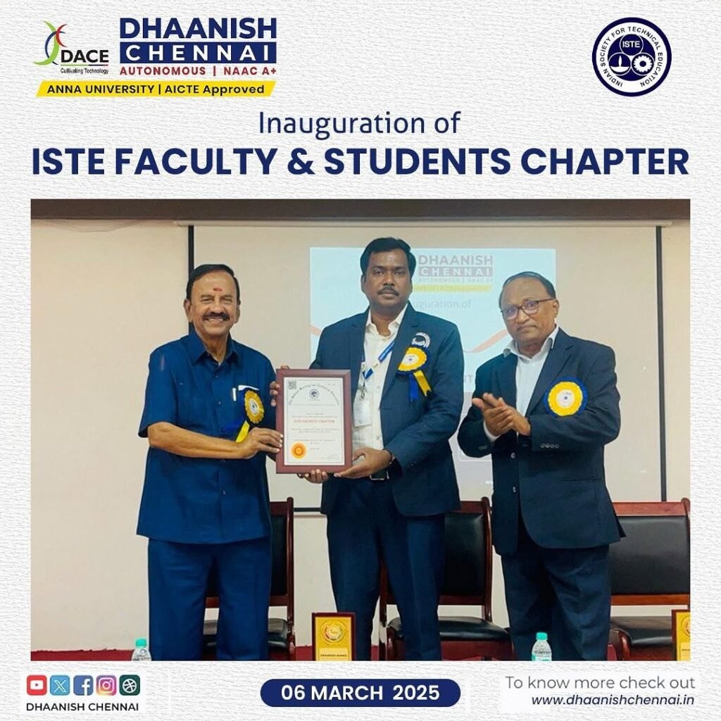 📢 Dhaanish Chennai Inaugurates ISTE Faculty & Students Chapter! 🎉
